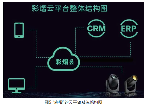 彩熠云管理平台V2.0版本(见图5)将灯具接入云端,通过“一朵云、两个端、多业务”的IoX-Solution管理系统,打通企业客户关系管理系统和企业资源数据库,将云、企业信息管理系统、灯具三者联为一体,可自动获取CRM系统客户/订单信息,向用户发送设备保养提醒、故障诊断、软件升级提示等服务信息,并可为灯具设置电子围栏,实现全自动出入仓逻辑,同时为后续开展LBS①服务提供基础数据。