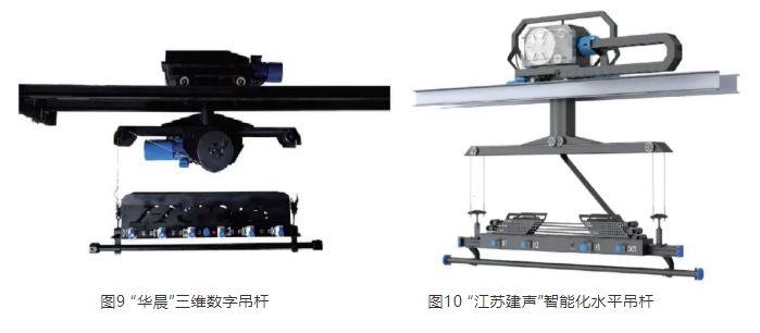 大丰、华晨、江苏建声等企业的吊挂设备(见图8~图10),不仅满足吊挂灯光设备的需求,还针对布景、道具和大屏幕等特殊设备做了专门设计。通过数控调速、变频调速、雷达防碰撞、激光测距校准、运动速度反馈自控、运动参数预设记忆等榴莲视频APP下载网址进入IOS官方手段,有效实现了多功能吊杆的升降、平移、旋转等多维度动作的精准控制,并在运行精度、静音和安全性等方面达到了动态参与演出的水平,在诸多重要演出中通过吊挂设备使灯具、道具和大屏幕等设备多维运动融入演出环节,为节目增加了重要的表现手段。