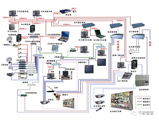 弱电系统是现代建筑物内的综合系统工程。它与大楼内所有建筑物的机电设备如变配电、空调、照明等设施有密切关系。这些弱电系统有楼宇设备监控系统、安全防范系统、一卡通系统、卫星有线电视及视频点播系统、结构化综合布线系统、LED及触摸屏查询系统、多功能会议系统、机房、电源、防雷接地系统、背景音乐及广播系统等。