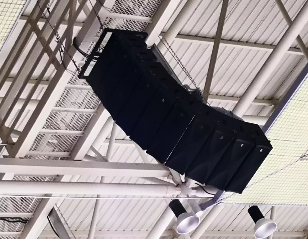注意线性声源阵列扬声器组吊装桁架的安全性、可靠性问题。