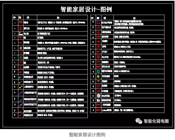 智能家居弱电设计图标主要有路由器,别墅门口机,智能主机,电源,烟感,云台摄像机,紧急按钮等组成。
