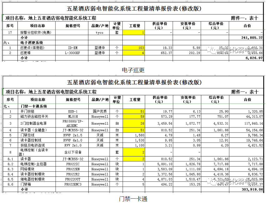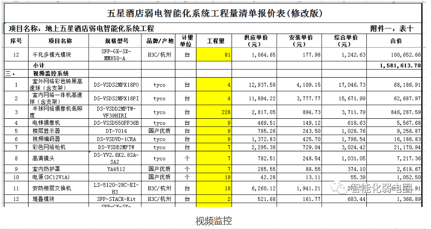 现在这套模板工程量预算,以及清单格式制作,可以作为酒店建设者和造价工作者的参考模板。 本套五星级酒店智能化弱电系统工程量清单比较完整,供有需要的朋友参考学习。