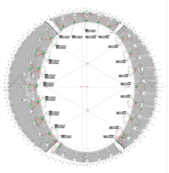 扩声控制室位于体育场西北角,并在其他四个拐角设置3间功放机房,用于布置主扩扬声器系统相关的功率放大器设备,这样可以有效缩短扬声器线缆传输距离,降低信号衰减,保证主扩声信号质量。